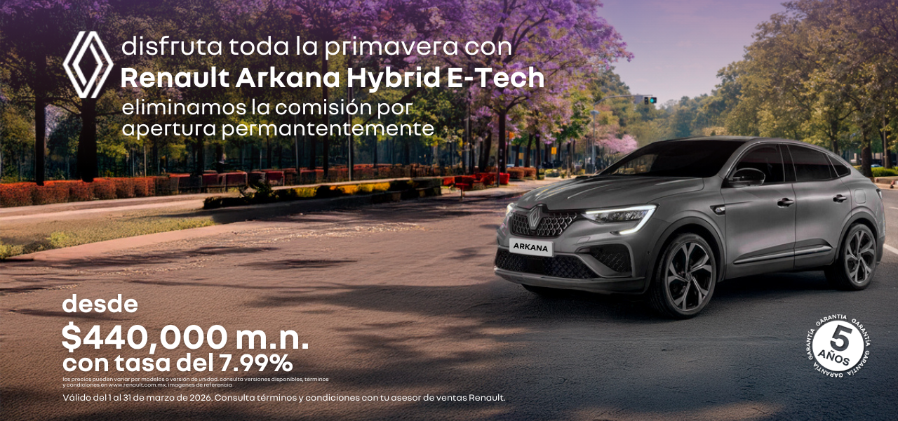 Esta primavera atrévete a destacar en cada trayecto. Estrena tu Renault Arkana desde $440,000 m.n. con tasa desde 7.99%, y vive la combinación perfecta entre diseño deportivo tipo SUV coupé, tecnología avanzada y confort superior. Haz que cada salida se convierta en una experiencia diferente, con el estilo que roba miradas en cualquier lugar.
